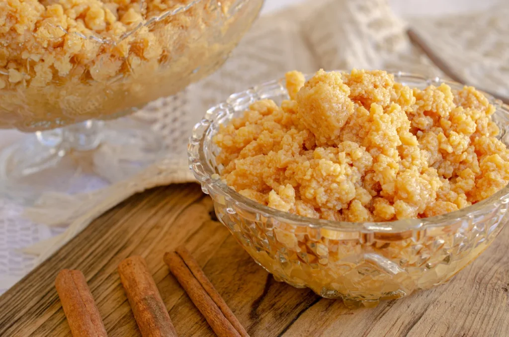O charme desse doce está justamente na sua textura. Ele fica com pequenos gruminhos macios, que dão uma experiência diferente a cada colherada. O processo de talhar o leite pode parecer estranho para quem nunca fez. Mas é exatamente isso que cria a magia da receita. O contraste entre o azedinho e o doce é equilibrado e muito agradável. É uma receita que atravessa gerações e continua encantando. Ideal para quem gosta de experimentar sabores tradicionais.